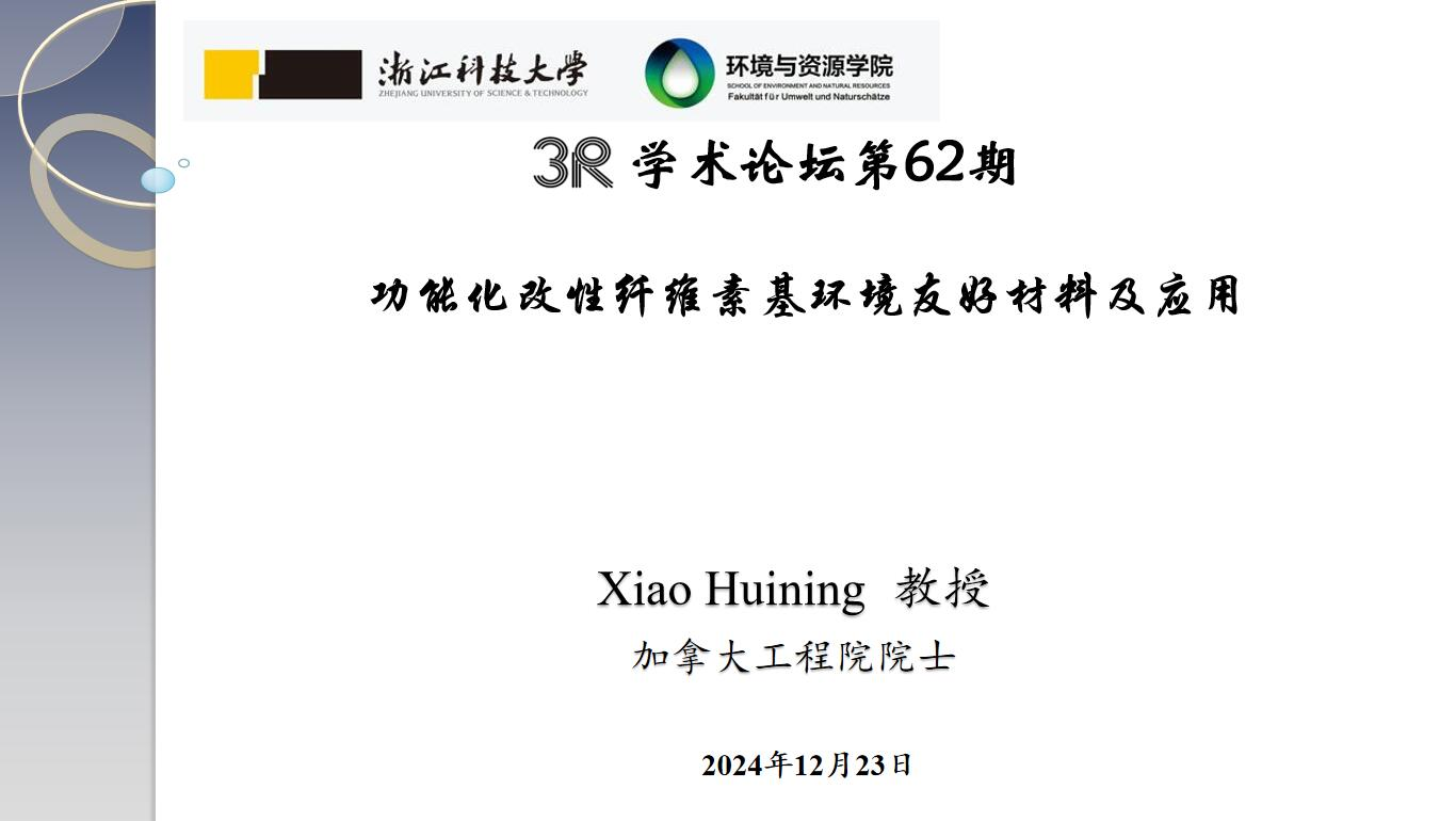 肖惠宁,加拿大新不伦瑞克大学化学工程系教授,加拿大工程院院士,SCIE期刊J. Bioresources & Biproducts主编(影响因子20.2),曾在英国曼彻斯特大学任讲师和博士生导师(1996-2001)。主要研究方向为改性天然纤维素以及智能性水凝胶和纳米材料的制备及其在造纸、环境、农业等领域的应用。迄今为止已发表国际SCI论文530余篇(Google Citations>23480,h-index 74)。曾担任加拿大基金委NSERC两个杰出科研中心专项课题团队负责人和加拿大基金委化学工程及材料基金评审委员会委员。自2001年在UNB工作起共培养70余位博士生和博士后,其中多人获重要奖项(包括加拿大首席研究主席CRC和中国国家基金委杰青项目)。(环资学院李静)