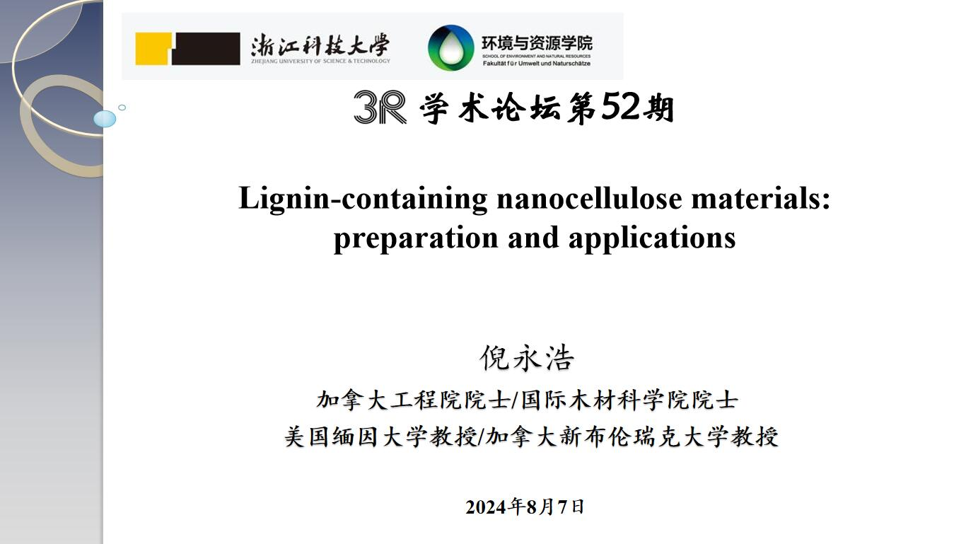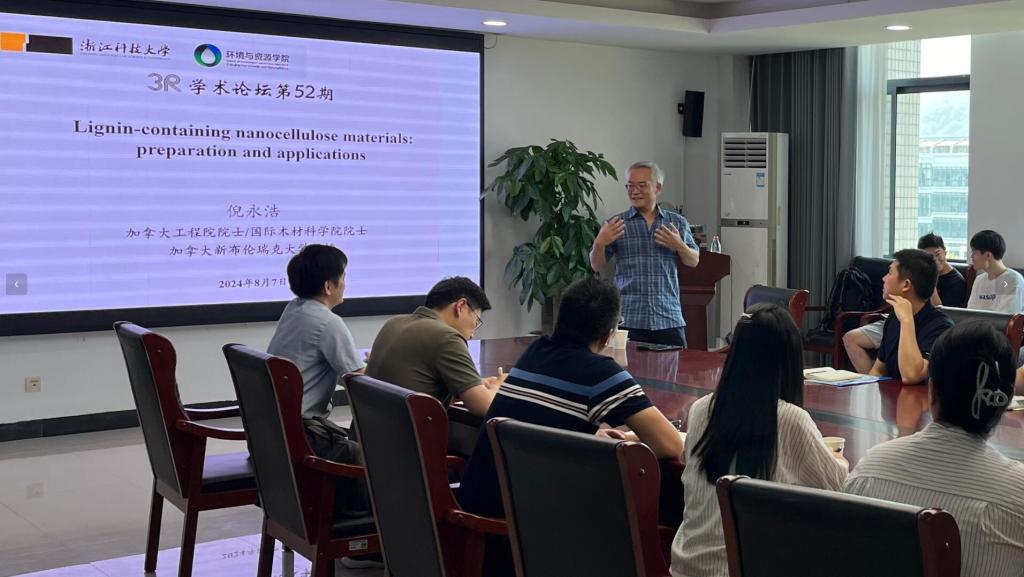 并作“3R”论坛第52期学术报告 “Lignin-containing Nanocellulose Materials: Preparation and Perspectives”。报告由学院副院长胡志军教授主持,轻化工程系教师、研究生等40余人参加了报告会。