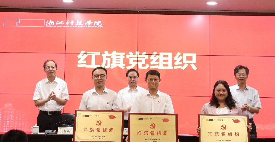 环境与资源学院党总支再获校“红旗党组织”;环资学院轻化系教师党支部获“红星党支部”;李莹老师“白+黑”版的双碳故事获校第二届微型党课大赛教工组二等奖,表彰大会上,校领导为获奖单位和老师颁发了证书。