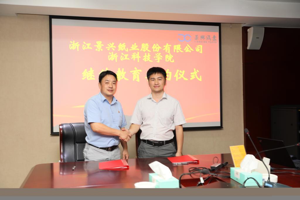 会上,环资学院与浙江景兴纸业股份有限公司双方表示将通过党建引领,结合实际发挥各自优势,推动双方在学科科研、人才培养、成果转化和继续教育等方面的深度合作,打造校企合作的“新样本”。双方代表还分别签署了党建共同体、产业学院实践创新基地和师资培训基地、继续教育等多项合作协议。