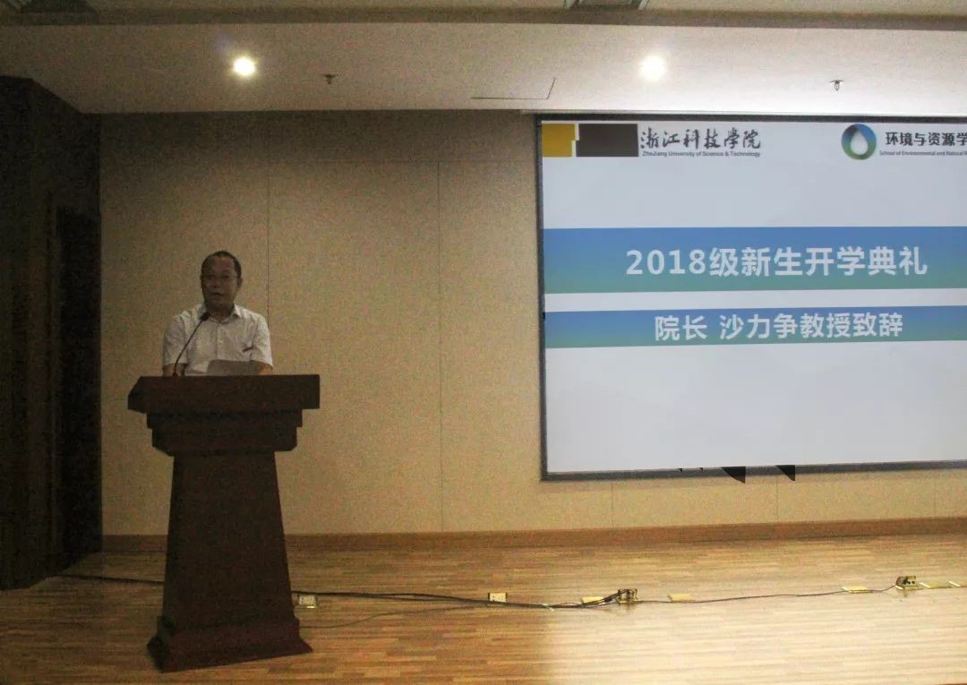 院长沙力争教授在致辞中向加入环资学院大家庭的新生表示热烈欢迎与衷心祝贺。同时向同学们提出新学期的新目标,希望同学们能够自主学习、主动实践,成为有理想、有道德、有文化、德智体美劳全面发展的环资学院建设者与接班人。