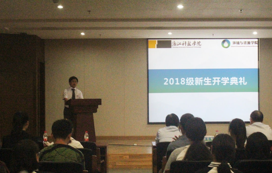 9月25日下午,环境与资源学院2018级新生开学典礼于安吉校区图书馆4楼报告厅隆重举行。环资学院院长沙力争、副院长方程冉、副院长胡志军、日本筑波大学江前敏晴教授、轻化工程系主任张学金、包装工程系主任陈文革出席本次典礼。新生班主任、全体辅导员、助班及教师代表、校友代表、学生代表、全体2018级新生等参加典礼。开学典礼由学院副院长胡志军主持。