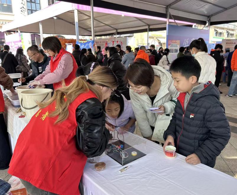 环境与资源学院受邀参展,开展绿色低碳科普宣传,现场演示自制的空气净化器,并生动讲解其工作原理,吸引了众多市民、学生和社区代表驻足互动。