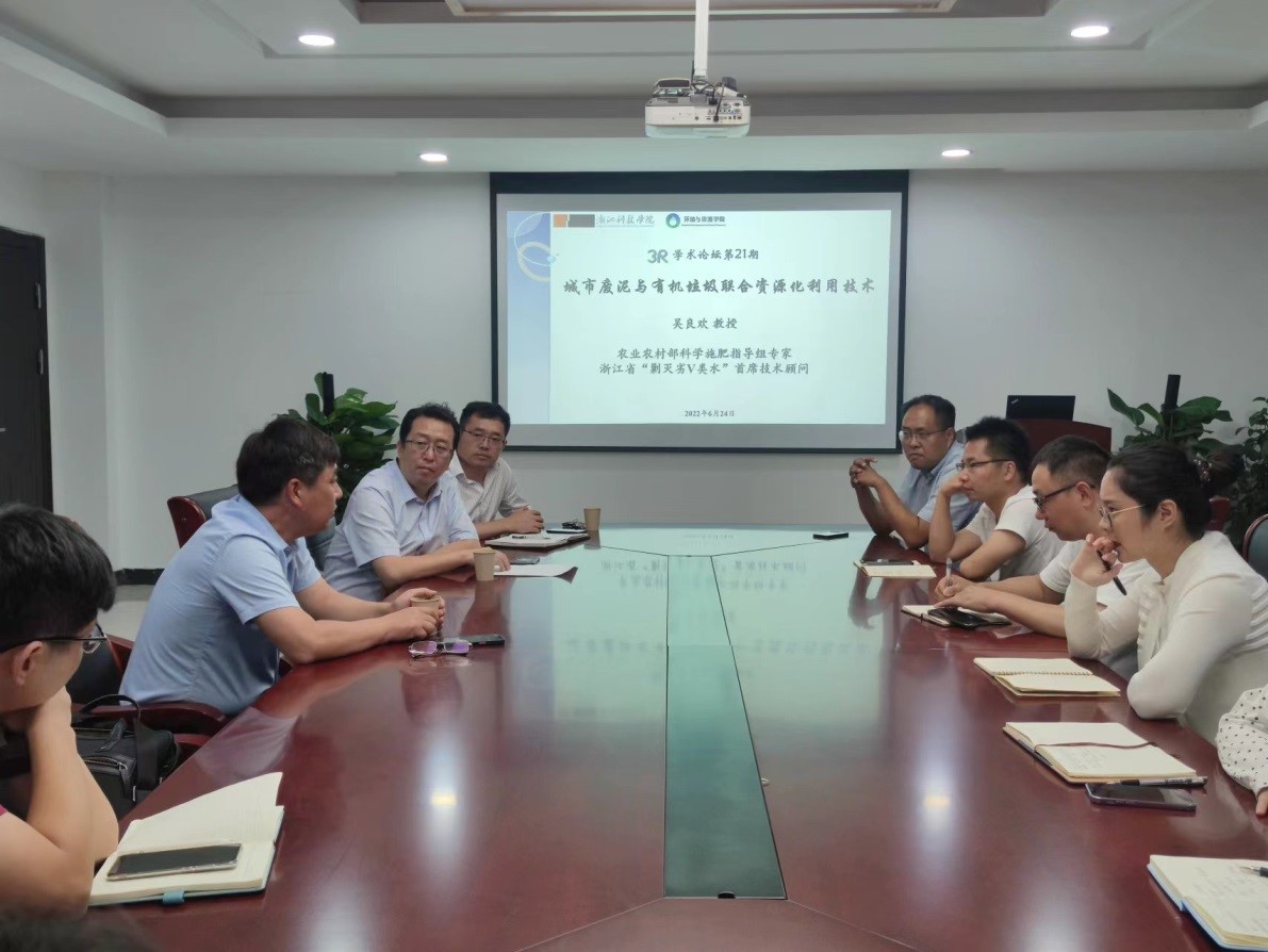2022年6月24日下午,农业农村部科学施肥指导专家、浙江省“剿灭劣V类水”首席技术顾问、浙江大学博士生导师吴良欢教授来访环境与资源学院浙江省废弃生物质循环利用与生态处理技术重点实验室并为第21期“3R”论坛做题为“城市废泥与有机垃圾联合资源化利用技术”的学术报告,报告由刘赫扬院长主持,张进副院长、学院专业教师以及研究生等三十余人参会。