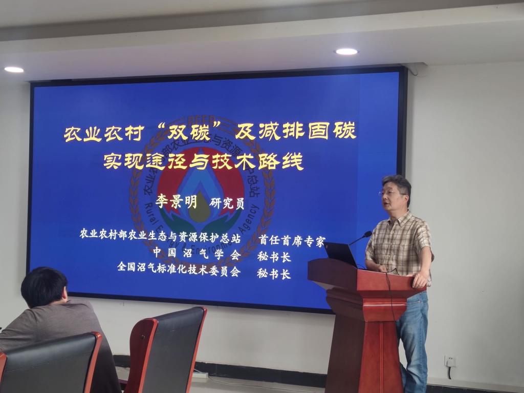 2022年9月22日下午,农业农村部农业生态与资源保护总站首任首席专家,中国沼气学会秘书长,全国沼气标准化技术委员会秘书长李景明到访环境与资源学院,并作题为“农业农村‘双碳’及减排固碳实现途径与技术路线”的学术报告,报告会由单胜道副校长主持,学院专业教师和硕士研究生等五十余人参加了报告会。