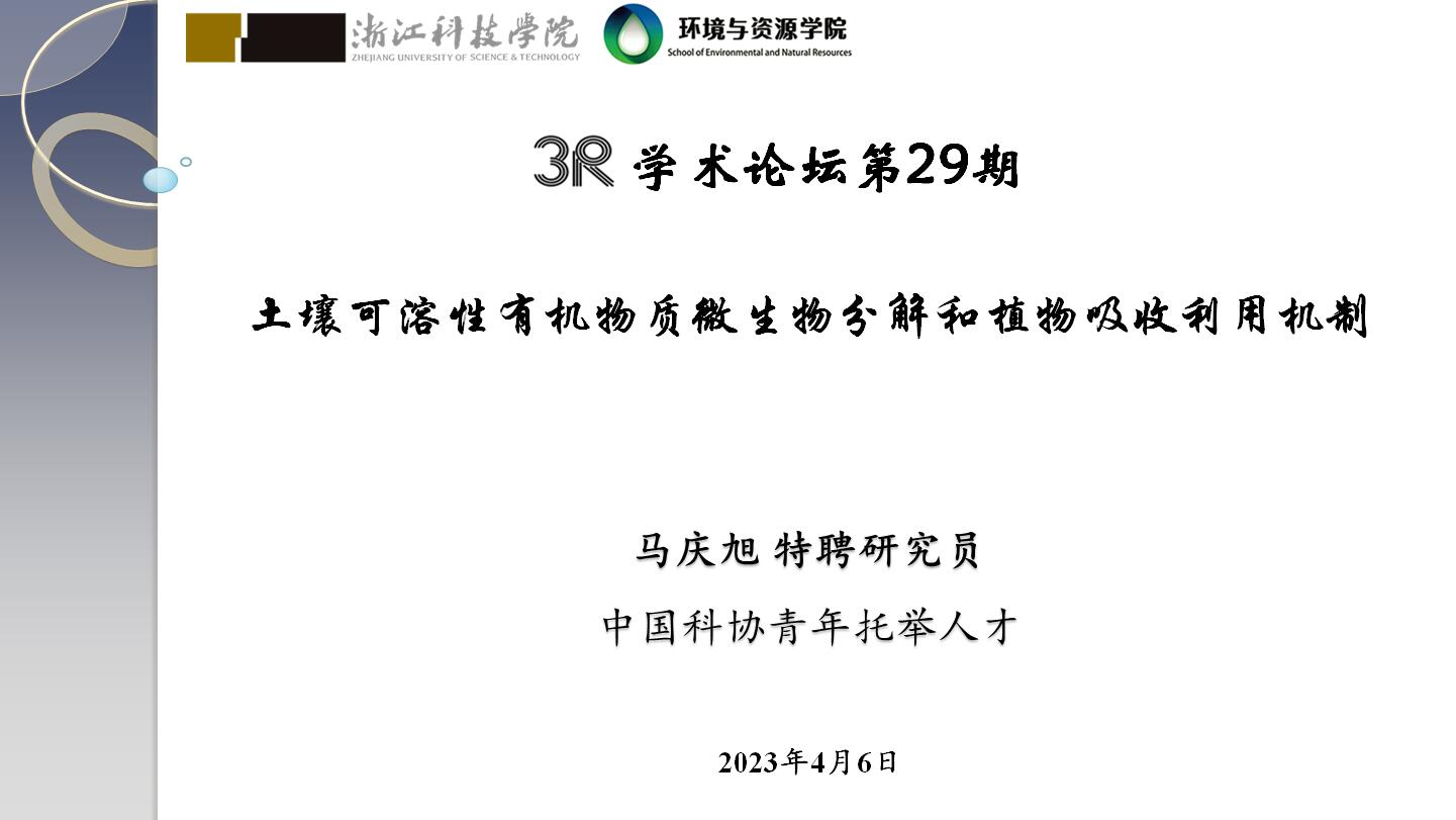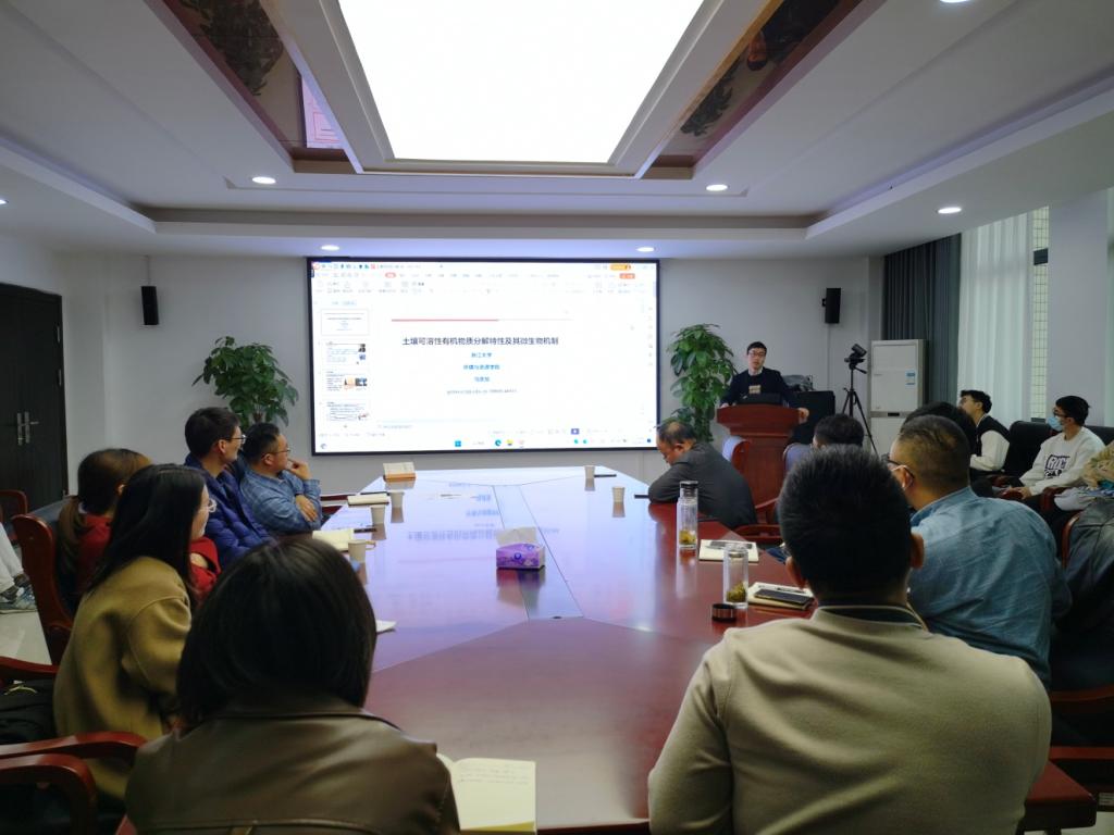 4月6日下午,浙江大学环境与资源学院特聘研究员马庆旭到访环境与资源学院并作题为“土壤可溶性有机物质分解特性及其微生物机制”的学术报告,报告由学院副院长张进教授主持,学院环境工程系教师、研究生等30余人参加了报告会。