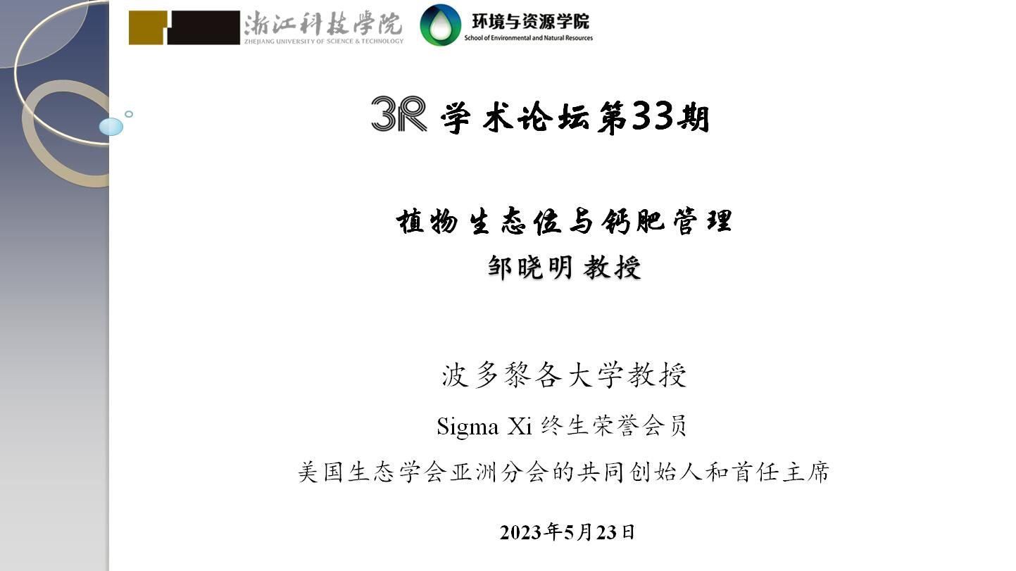 5月23日下午,美国波多黎各大学环境科学系邹晓明教授到访环境与资源学院并作题为“植物生态位与钙肥管理”的学术报告,报告由学院副院长张进教授主持,环境工程系专业教师和研究生等30余人参加了报告会。