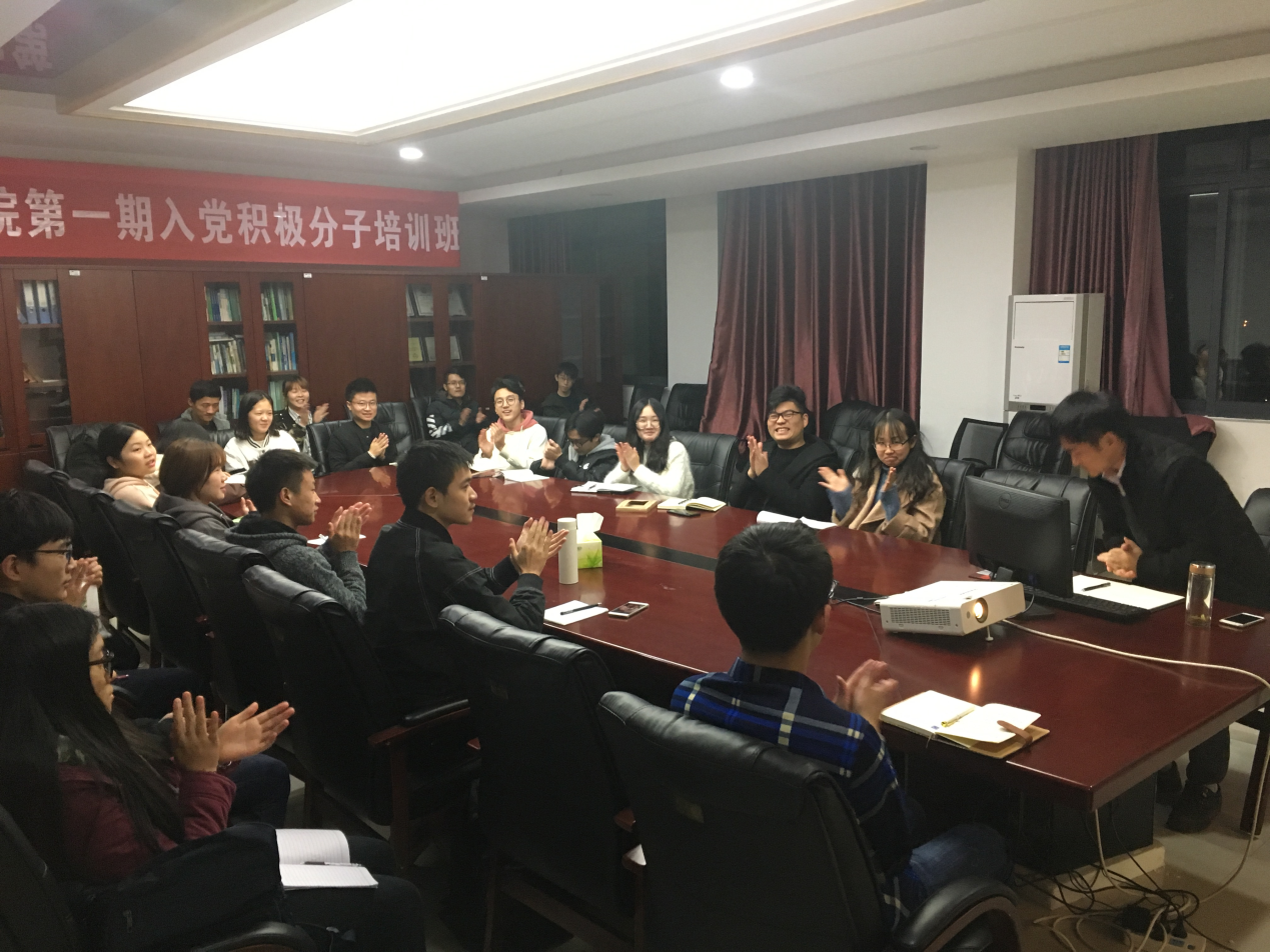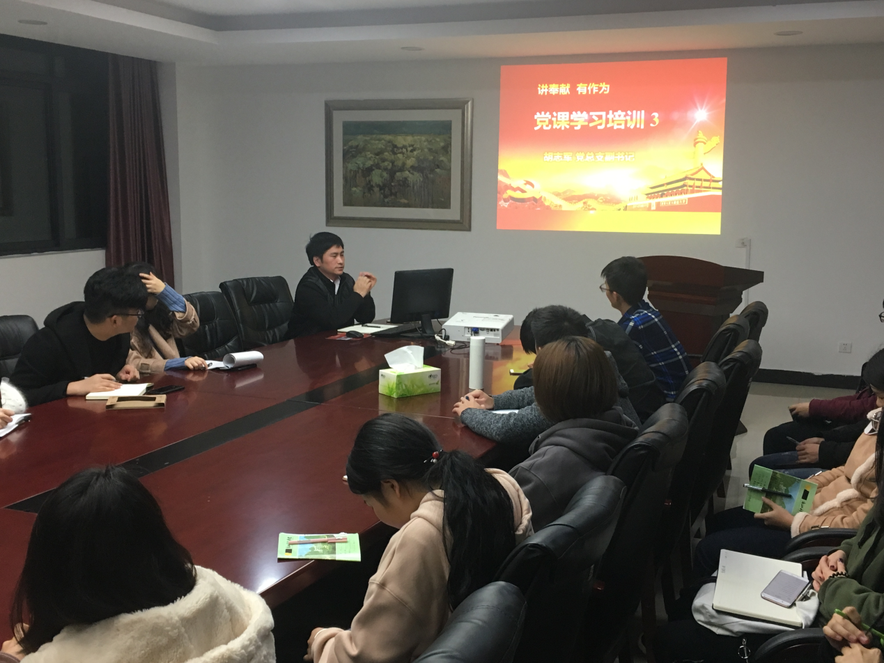 11月29日晚六点半环境与资源学院第一期入党积极分子培训班第三讲于实验大楼609开课,本期主讲人为环资学院党总支副书记胡志军老师。