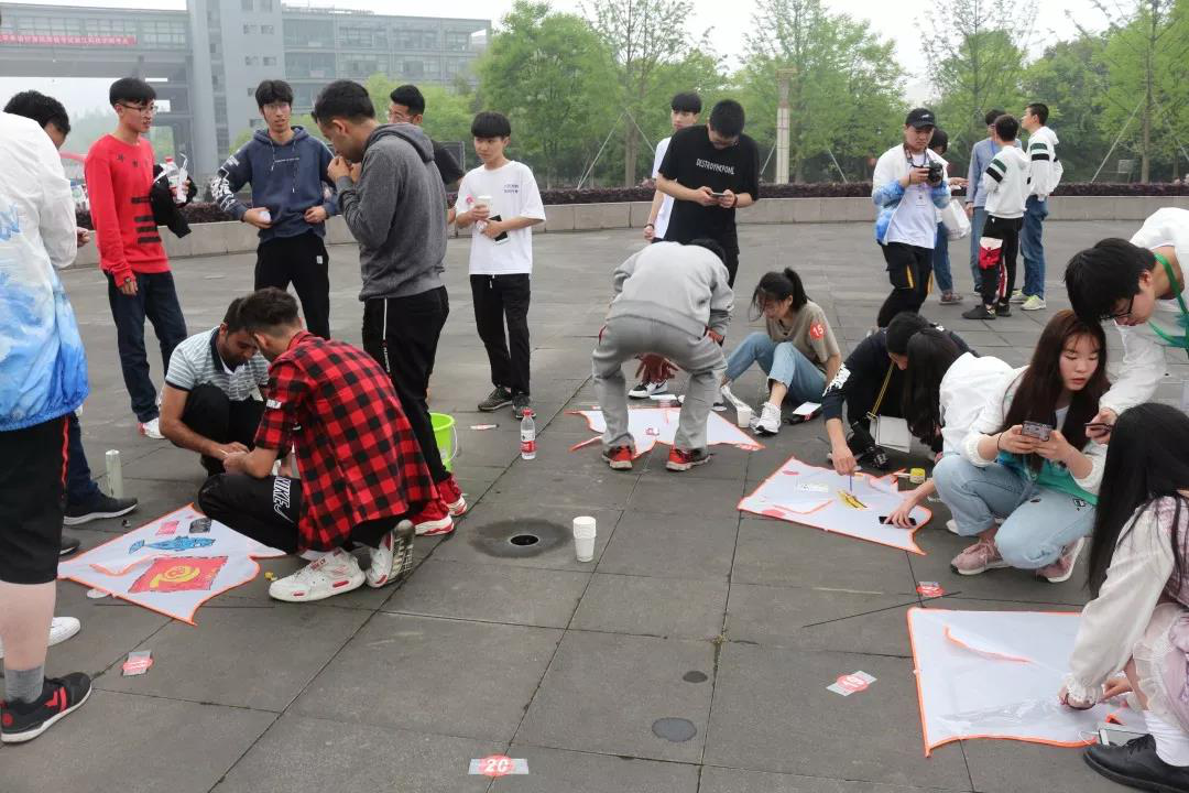 活动现场气氛热烈,同学们都积极参加游园游戏纸杯传水、送鸡毛信、雷区取水、手脚并用、知识竞赛等小游戏同学们玩的不亦乐乎同学们在游戏中学习团结,体验五四精神。天空下着小雨,纸笔勾勒春意。同学们怀着对新中国成立70周年的喜庆以及对五四精神的敬仰在风筝上绘出他们对祖国和党的美好愿望