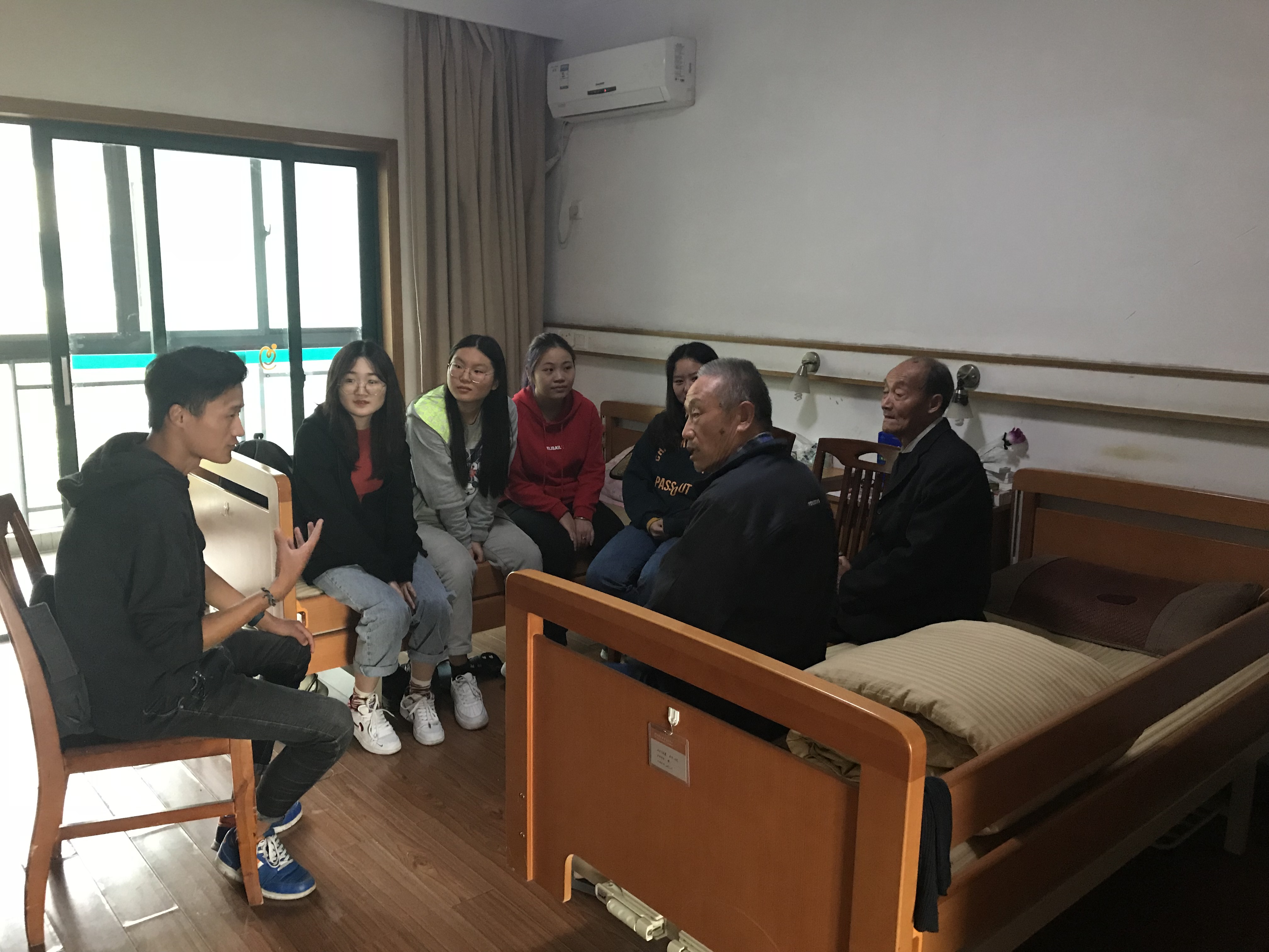 志愿者们按照约定时间到达了西湖区社会福利中心,福利中心的工作人员热情的接待了我们,并引导前往特护楼与老人们见面。志愿者们分小组与老人们进行交流,用最纯朴的慰问方式,陪老人聊聊天,听老人讲讲往事,关心老人们的近况。在交流中,老人们讲述了他们的故事,一些老党员们还分享了自己的入党历程及工作经历,感慨国家的发展变化,坚定坚持中国共产党领导的决心。作为学生党员的志愿者们在与老人们的交流中,更加坚定了自己的入党动机,被党员们称为是一堂生动的党课。