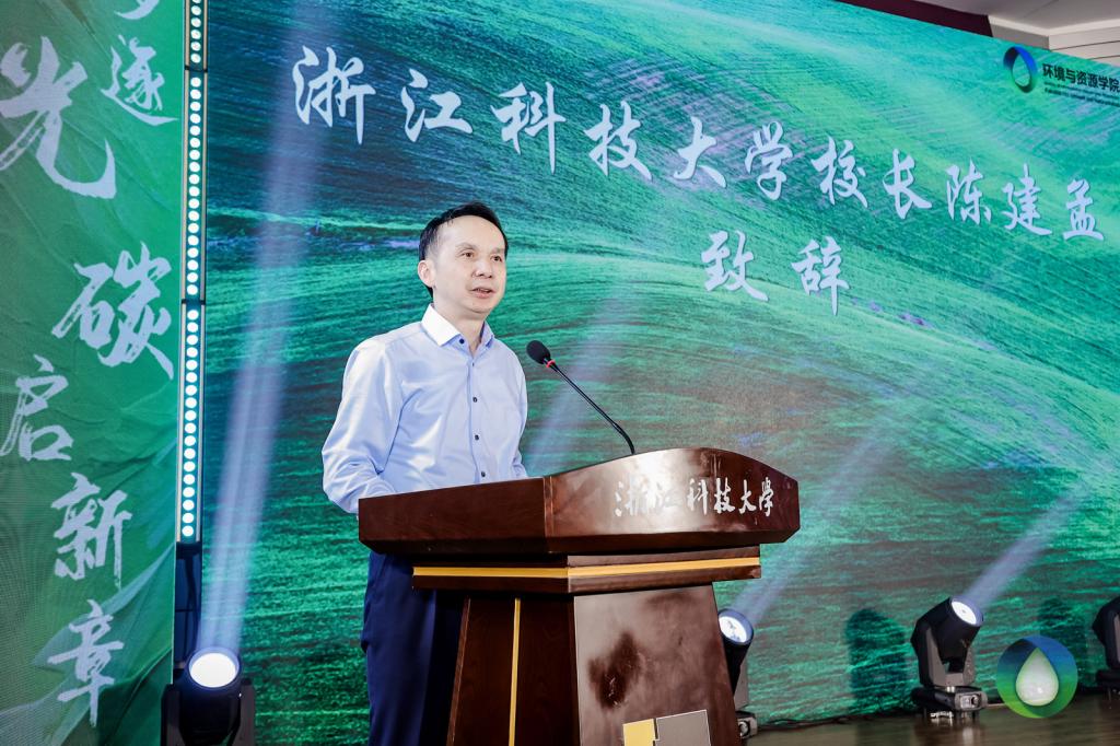 校长陈建孟教授出席并致辞。杭州特种纸业有限公司副总经理吴安波,杭州华旺新材料科技股份有限公司副总经理吴海标,浙江景兴纸业股份有限公司人事部经理章红英,浙江华邦新材料有限公司研发总监陈建斌,嘉兴奥兹化工有限公司总工程师屠文浩等企业负责人受邀参加。学校党委组织部副部长、人才办副主任张学金,学工部副部长、学生处副处长、招就办副主任王德栋,研工部副部长、研究生院副院长、学科办副主任庄海峰,教务处副处长胡志军以及环资学院党政班子、全院师生共同参与盛典。