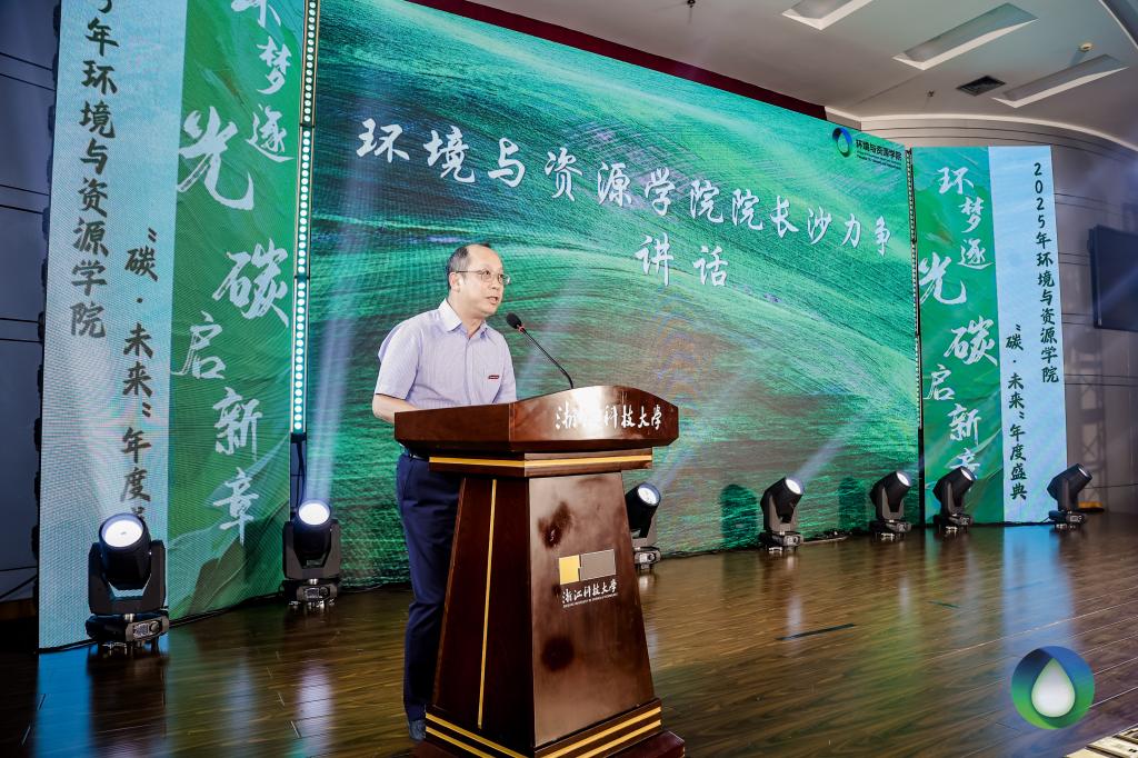 环资学院院长沙力争代表学院党政班子对各位来宾出席盛典表示感谢,向获奖师生表示祝贺,并对全院师生分别提出殷切期望,同时寄语2025届毕业生要勇毅前行,在各行各业发光发热,为母校增添荣光。