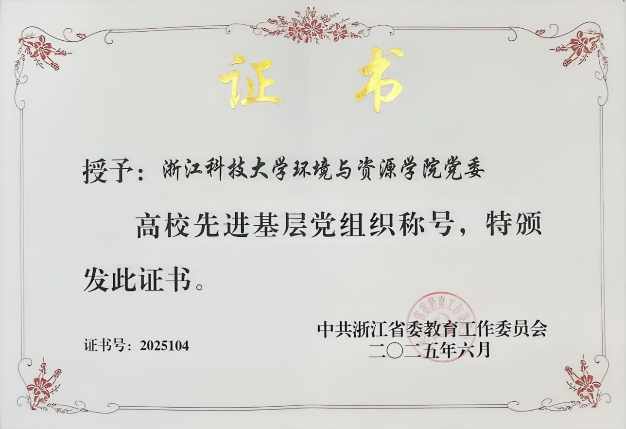近日,浙江省委教育工委对2025年度全省高校优秀共产党员、优秀党务工作者和先进基层党组织进行表彰。环境与资源学院党委获浙江省高校先进基层党组织表彰。