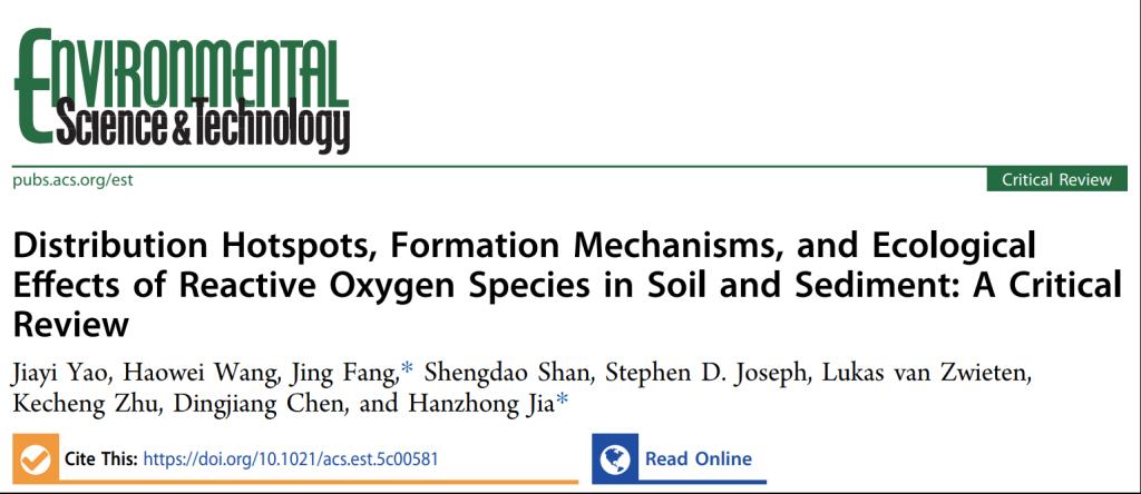 环境与资源学院废弃物循环利用与减污降碳团队方婧教授课题组在环境领域著名学术期刊Environmental Science & Technology上发表题为“Distribution Hotspots, Formation Mechanisms, and Ecological Effects of Reactive Oxygen Species in Soil and Sediment: A Critical Review(土壤和沉积物中活性氧的分布热区、形成机制及生态效应:综述)”的综述论文。环资学院青年教师姚嘉一为论文第一作者,环资学院方婧教授和西北农林科技大学资源环境学院贾汉忠教授为论文共同通讯作者,444咖啡